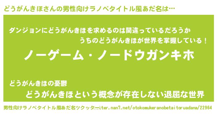 | 伝説のあだ名 | 『救世主となる占い師どうがんきほ』 |