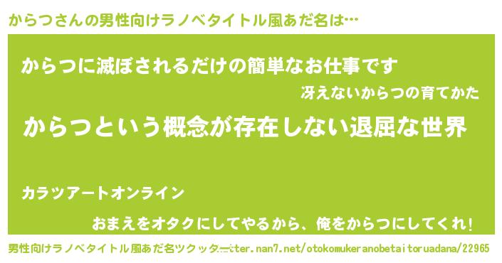 | ヘコむあだ名 | 『からつ(笑)』『からもー』『からを』 |