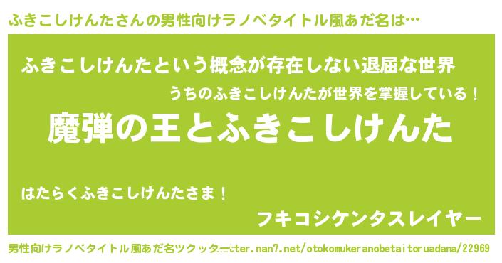 | 意味不明あだ名 | 『住所不定無職ふきこしけんた(41歳)』 |