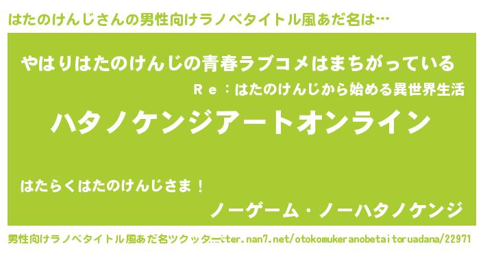 | 女子向けラノベタイトル風あだ名 | 『誰かこのはたのけんじを説明してください! ~契約から始まるウェディング~』 |