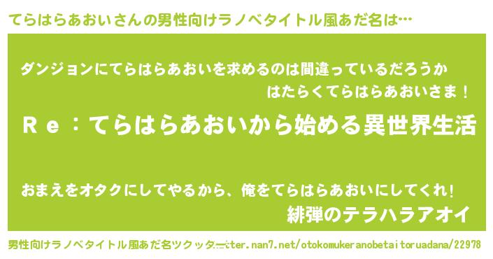 | 女子向けラノベタイトル風あだ名 | 『てらはらあおいストレイドッグス』 |