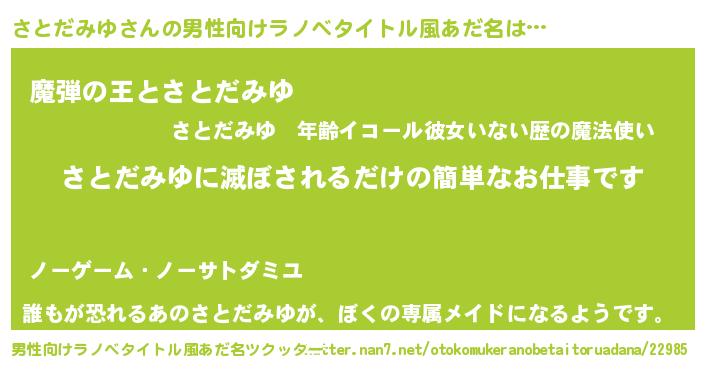 | 胡散臭い通販商品みたいなあだ名 | 『あなたにだけ特別に提供する100年もののヴィンテージワイン…その名も「さとだみゆ」』 |