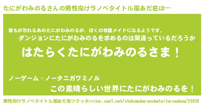 | 胡散臭い通販商品みたいなあだ名 | 『来世でも幸せになれる水素水…その名も「たにがわみのる」』 |