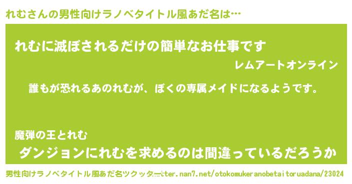 れむさんの男性向けラノベタイトル風あだ名をツクッター!