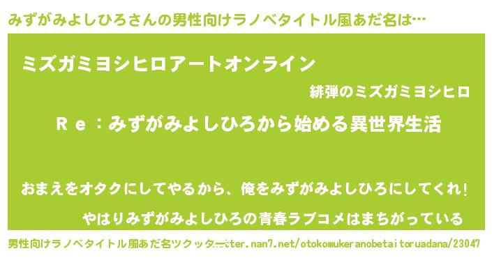 | 意味不明あだ名 | 『自称みずがみよしひろ』 |