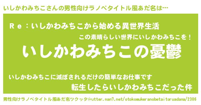 | 女子向けラノベタイトル風あだ名 | 『いしかわみちこ姫と円卓の騎士』 |