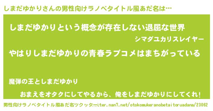 | 女子向けラノベタイトル風あだ名 | 『しまだゆかり伯爵の花嫁』 |