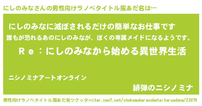 | 女子向けラノベタイトル風あだ名 | 『闇のにしのみな』 |
