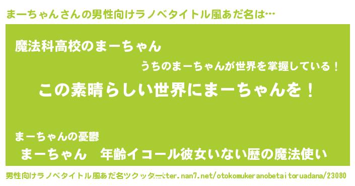 | 意味不明あだ名 | 『住所不定無職まーちゃん(11歳)』 |