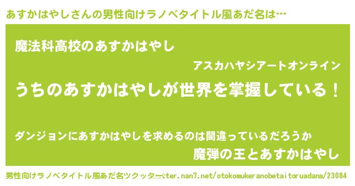 | 意味不明あだ名 | 『自称あすかはやし』 |
