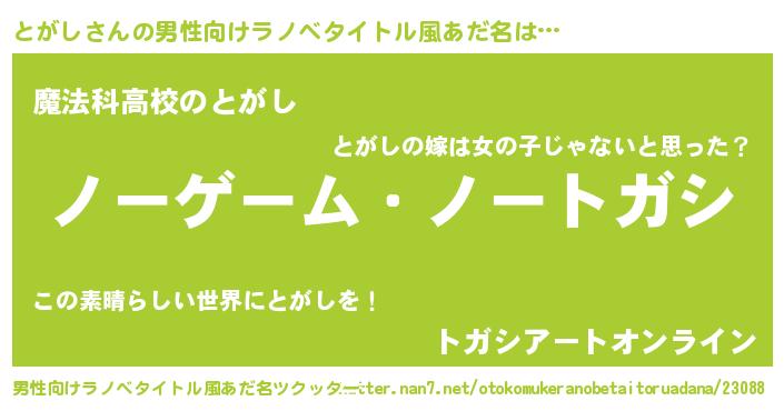 | ピコ太郎風あだ名 | 『トト太郎』『トコ八郎』『トガ十郎』 |