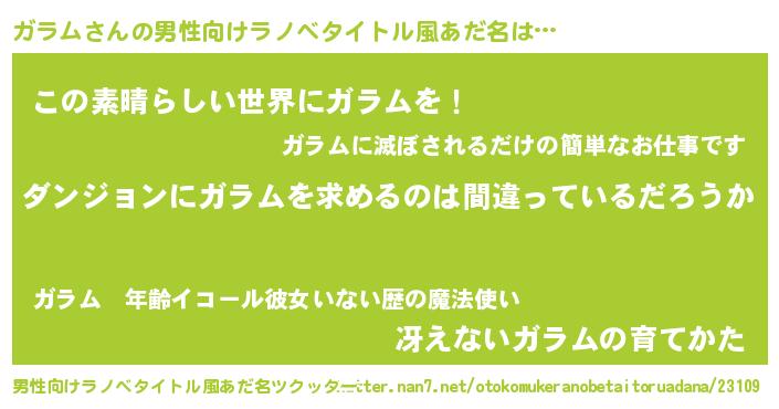 | 女子向けラノベタイトル風あだ名 | 『ガラムは平凡を望む』 |