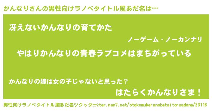 | 女子向けラノベタイトル風あだ名 | 『かんなり伯爵の花嫁』 |