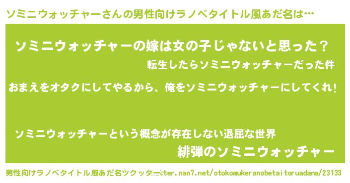 | 女子向けラノベタイトル風あだ名 | 『ソミニウォッチャー恋絵巻』 |