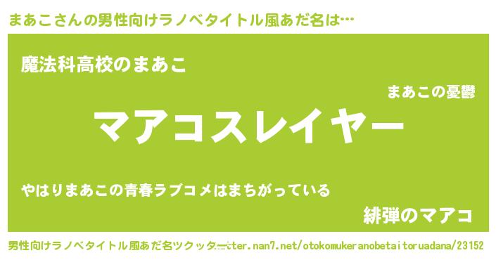 | 女子向けラノベタイトル風あだ名 | 『婚約破棄系悪役まあこに転生したので、保身に走りました。』 |