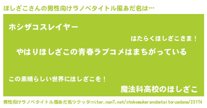 | 女子向けラノベタイトル風あだ名 | 『ほしざこの雑貨屋さん』 |