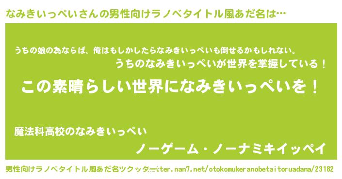 | 胡散臭い通販商品みたいなあだ名 | 『あなたにだけ特別に提供する世界で10本だけ現存している希少なブランデー…その名も「なみきいっぺい」』 |