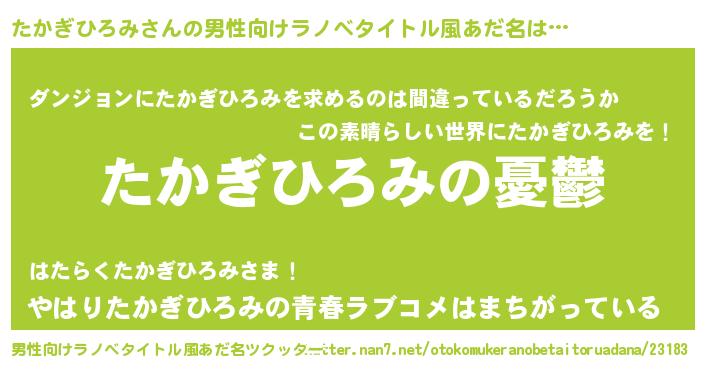 | 胡散臭い通販商品みたいなあだ名 | 『必ず成功するブレスレット…その名も「たかぎひろみ」』 |
