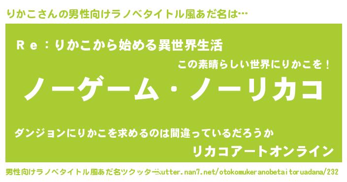 | ピコ太郎風あだ名 | 『リリ太郎』『リコ三郎』『リカ史郎』 |