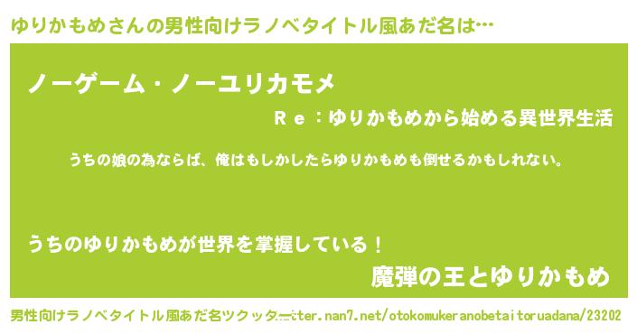 | ポケモン風あだ名 | 『ユリカダネ』『ユックウザ』 |