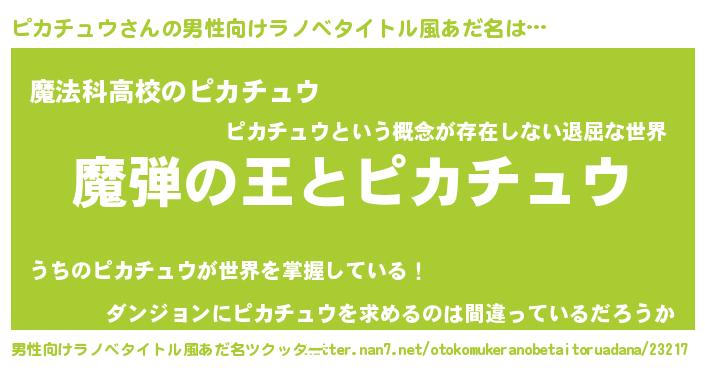| 意味不明あだ名 | 『住所不定無職ピカチュウ(14歳)』 |