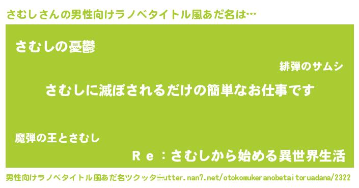 | 胡散臭い通販商品みたいなあだ名 | 『モテモテ間違いなし水晶球…その名も「さむし」』 |