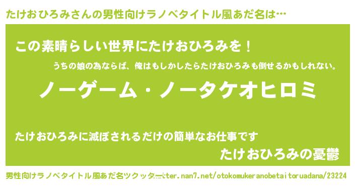 | 女子向けラノベタイトル風あだ名 | 『死神たけおひろみの再婚』 |