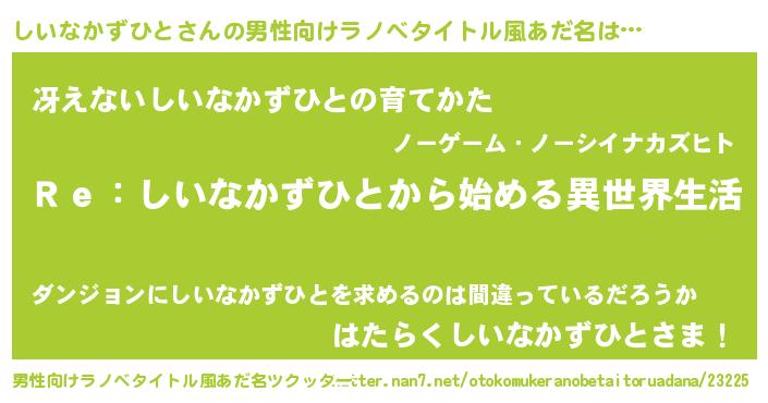 | ヘコむあだ名 | 『しいを』『しいなかずひと(小並感)』 |