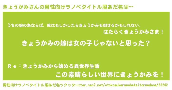 | 女子向けラノベタイトル風あだ名 | 『きょうかみの卵を拾いまして』 |