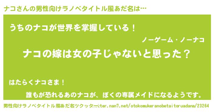 | ポケモン風あだ名 | 『ヒナコ』『メロナッコ』『ゼニナコ』 |
