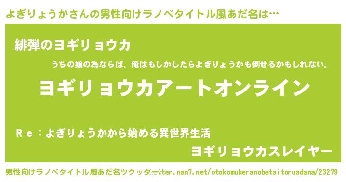 | 胡散臭い通販商品みたいなあだ名 | 『億万長者になれる水晶球…その名も「よぎりょうか」』 |