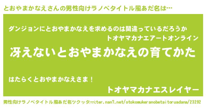 | 胡散臭い通販商品みたいなあだ名 | 『伝統あるネックレス…その名も「とおやまかなえ」』 |