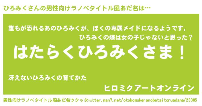 | ヘコむあだ名 | 『ひろみく(笑)』『ひろにゅー』 |
