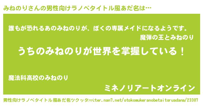 | 女子向けラノベタイトル風あだ名 | 『男装みねのりの憂鬱な任務』 |