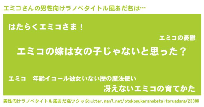 | 女子向けラノベタイトル風あだ名 | 『エミコの卵を拾いまして』 |