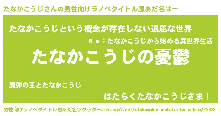 | ヘコむあだ名 | 『たなにー』『たなかこうじ(笑)』 |