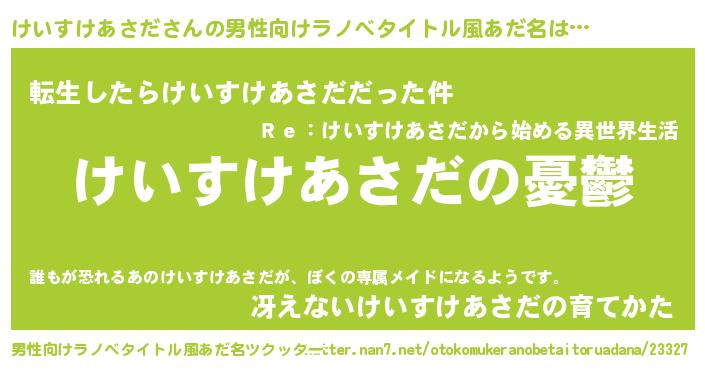 | 女子向けラノベタイトル風あだ名 | 『けいすけあさだ姫と円卓の騎士』 |