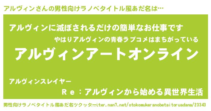 | 胡散臭い通販商品みたいなあだ名 | 『モテモテ間違いなし水晶球…その名も「アルヴィン」』 |