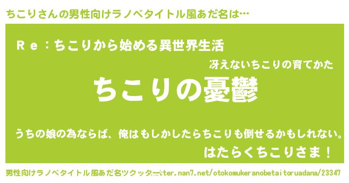| 胡散臭い通販商品みたいなあだ名 | 『必ず成功するブレスレット…その名も「ちこり」』 |
