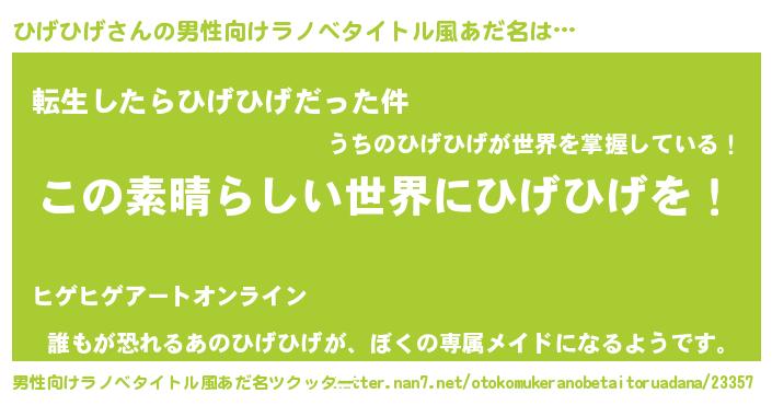 | 女子向けラノベタイトル風あだ名 | 『乙女ゲームの破滅フラグしかない悪役ひげひげに転生してしまった…』 |