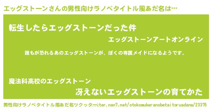| 意味不明あだ名 | 『永久保存エッグストーン』 |