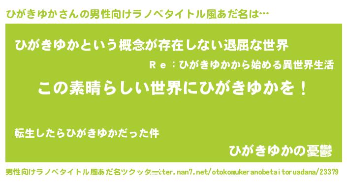 | 女子向けラノベタイトル風あだ名 | 『乙女ゲームの破滅フラグしかない悪役ひがきゆかに転生してしまった…』 |