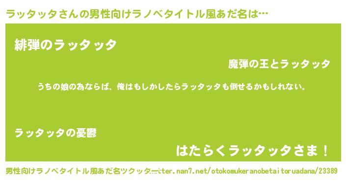 | 女子向けラノベタイトル風あだ名 | 『ラッタッタ伯爵の花嫁』 |
