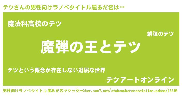 | 女子向けラノベタイトル風あだ名 | 『テツが死なない童話 林檎のテツの診療簿』 |