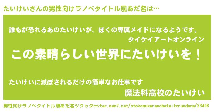女子向けラノベタイトル風あだ名 | 『悪役たいけいに転生したようですが、知った事ではありません』 |