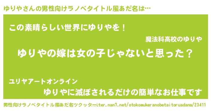 | 女子向けラノベタイトル風あだ名 | 『ゆりやの卵を拾いまして』 |