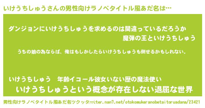 | ファンタジー風あだ名 | 『エターナルイケウチシュウー』 |