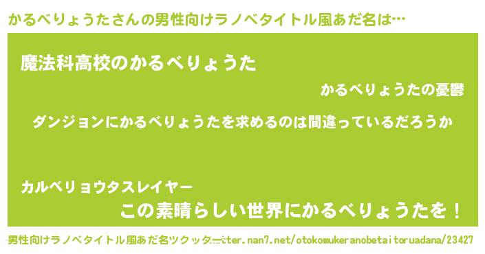 | 女子向けラノベタイトル風あだ名 | 『かるべりょうたは平凡を望む』 |