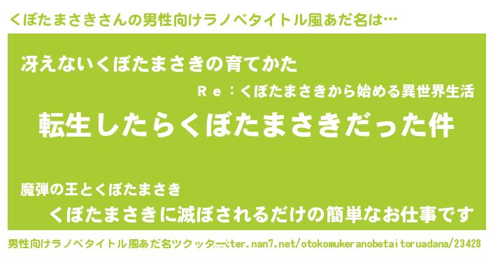 | 胡散臭い通販商品みたいなあだ名 | 『テレビで話題の高麗人参…その名も「くぼたまさき」』 |