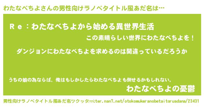 | 胡散臭い通販商品みたいなあだ名 | 『信頼と実績のペンダント…その名も「わたなべちよ」』 |